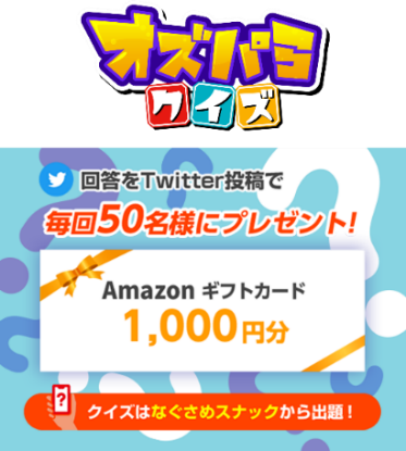 ③ クイズの回答をTwitterに投稿してAmazonギフトカードが抽選で当たる!「オズパらクイズ」
