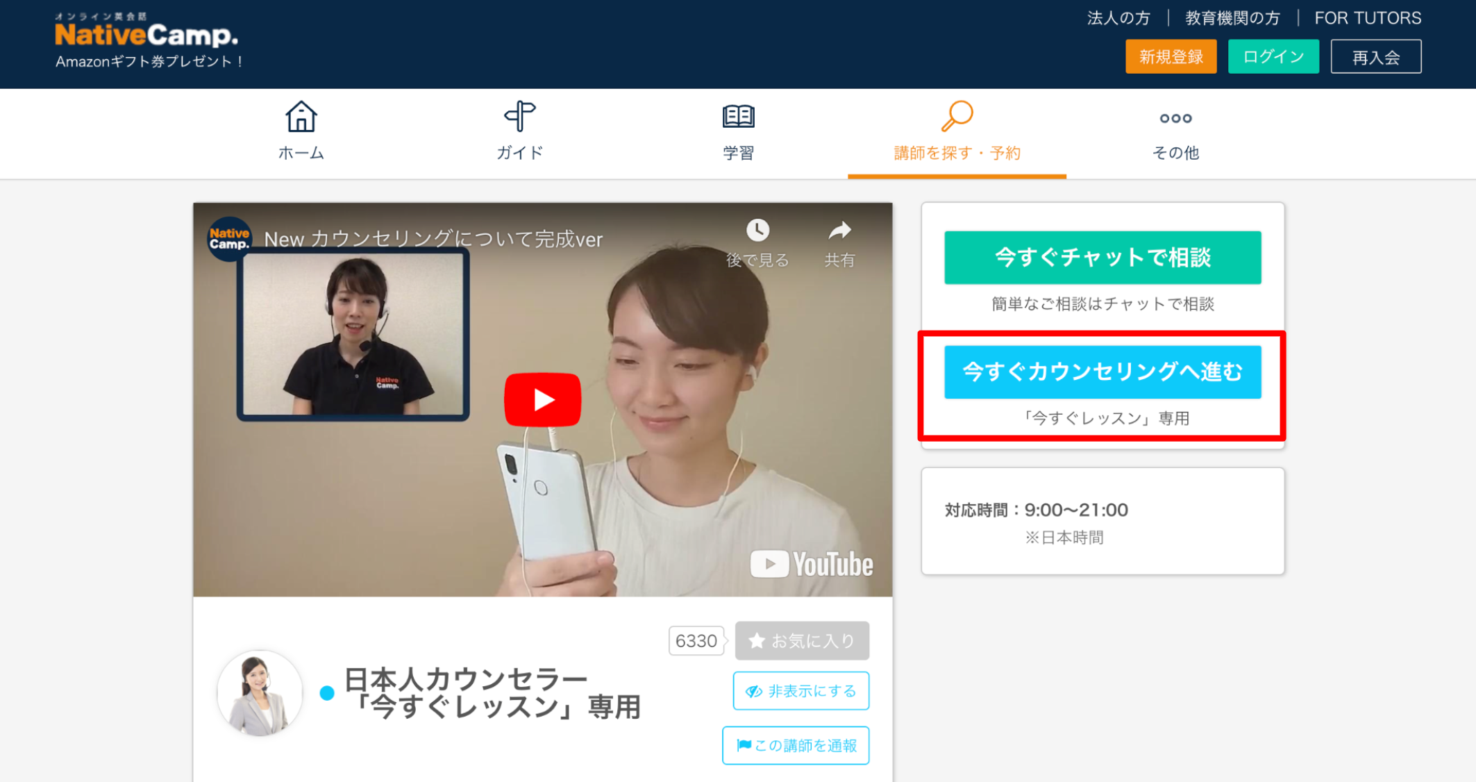 カウンセリング 詳細:https://nativecamp.net/counseling