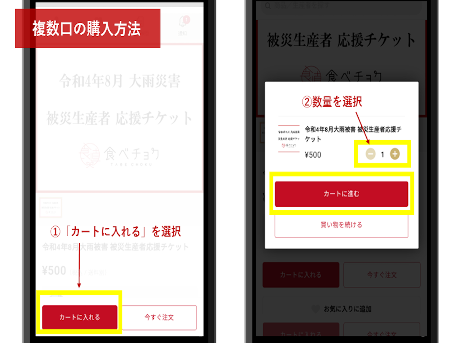 ・被災された生産者のために1口500円・5,000円の応援チケットを販売