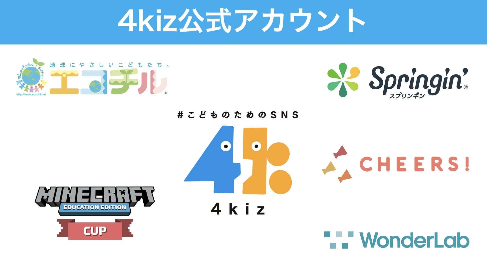 また、「4kiz公式アカウント」として、教育界をリードする以下の企業・団体・クリエイターの参画が決定しています。各公式アカウントからは、子ども向けのコンテンツや企画が発信される予定です。