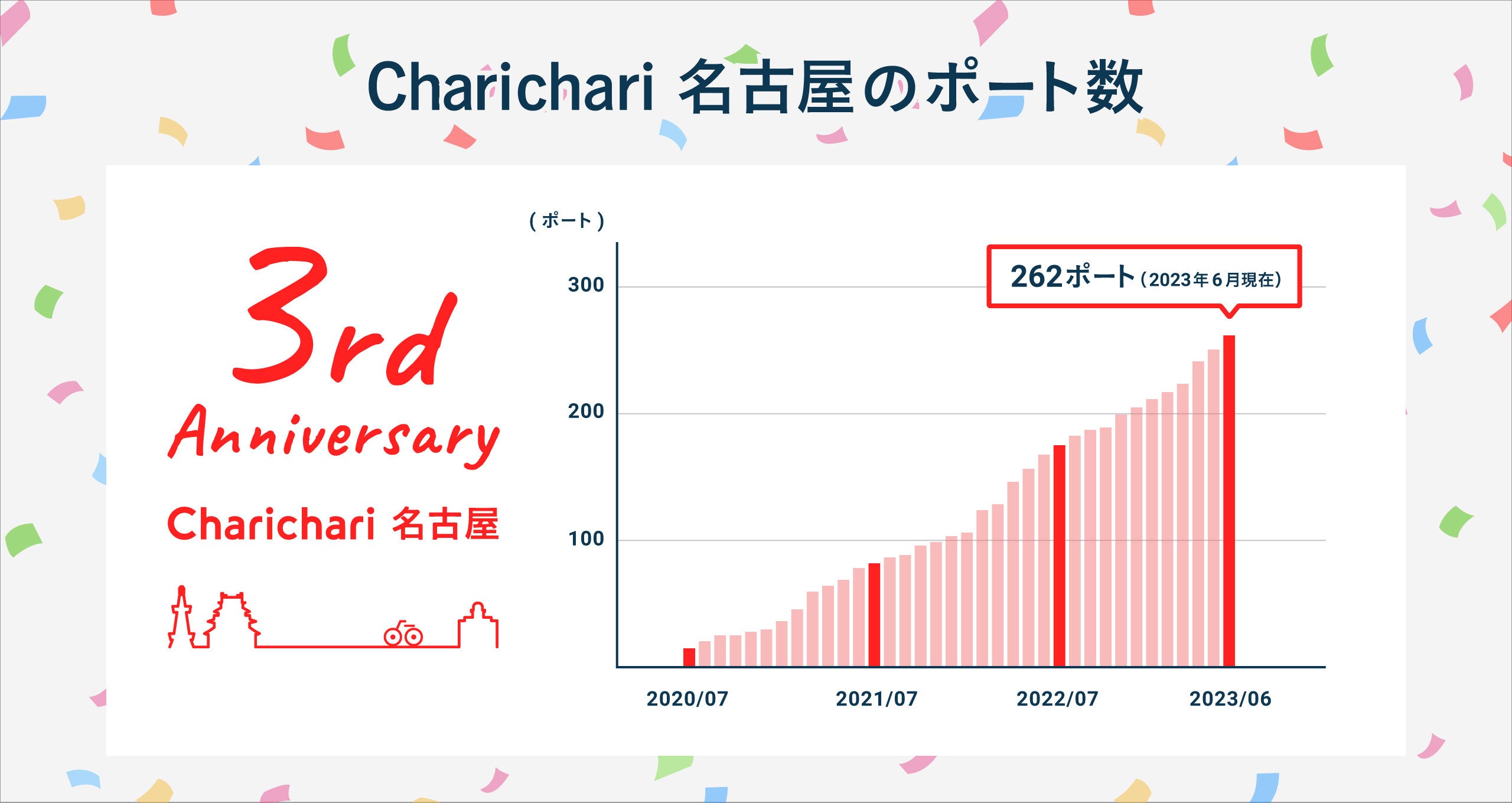 3周年を迎えた名古屋においても、名古屋駅・栄を中心とした中心市街地から、金山・熱田・大曽根(ナゴヤドーム)といった広域においてもエリアを拡大してまいりました。とくにこの1年では、近鉄名古屋線沿いへのエリア拡大、錦二丁目エリアマネジメント会社との包括連携協定に基づき道路占用許可を活用した道路上へのポート設置、栄中心部のアクセス向上にも繋がる愛知芸術文化センターへのポート設置など、名古屋市内全体の利便性向上に取り組んでまいりました。