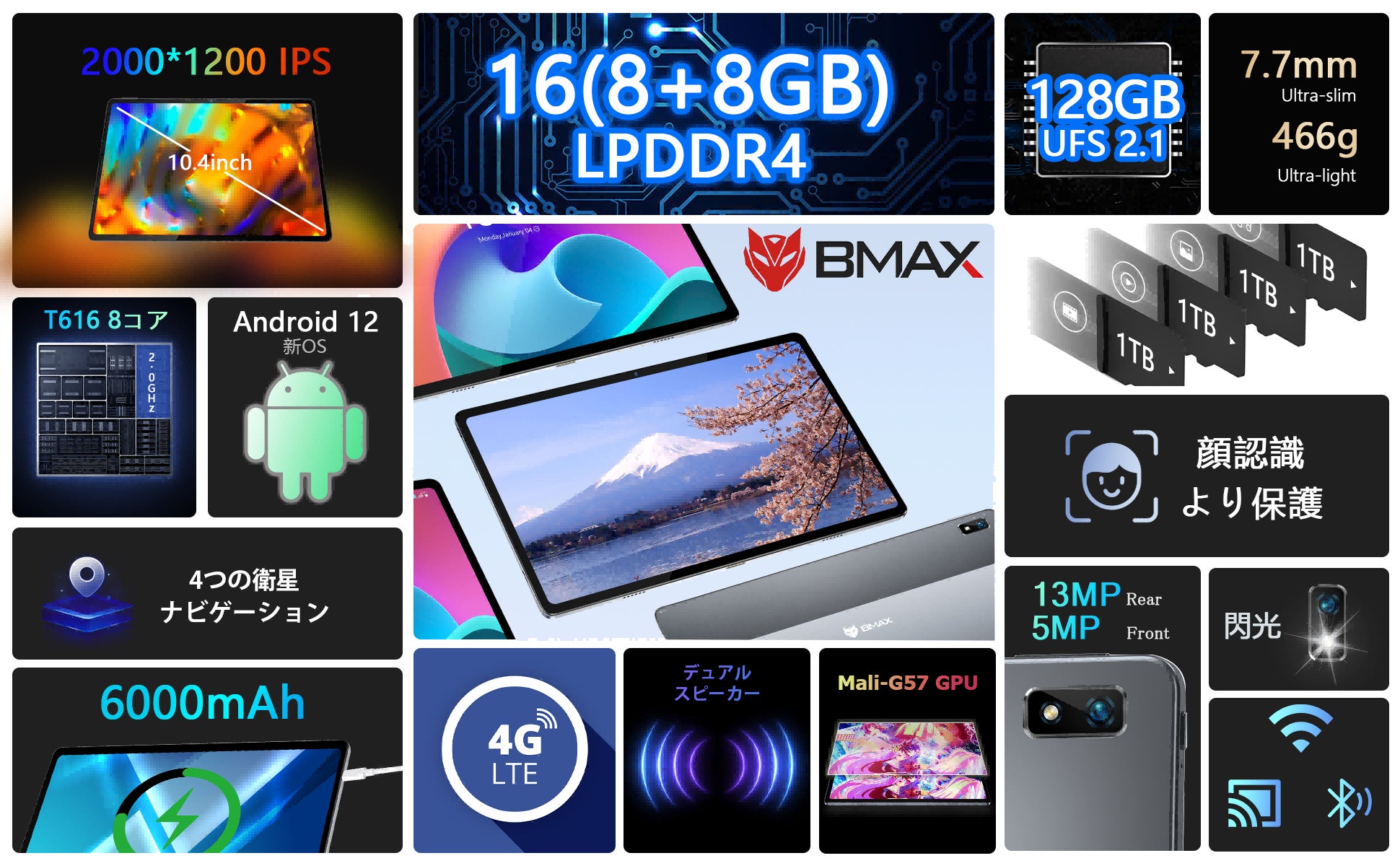 BMAX I11 Plusには16GB(8+8GB) LPDDR4の大容量が装備されており、超高速でスムーズな動作体験を楽しむことができます。128GBとMicroSD(TF)カードのストレージ容量を使用すると、メモリを1TBに拡張できます。より多くのアプリケーション、プレイリスト、写真、その他のサポートを使用できます。LINE/Netflix/YouTube/Facebook/Twitterなどのお気に入りのサードパーティアプリケーションをインストールすることもできます。Webサイトや動画を見たり、重いアプリや高画質のゲームを楽しみいただきます。お気に入りの本、曲、写真、映画、ゲームなど、好きなものをすべてダウンロードして保存できます。