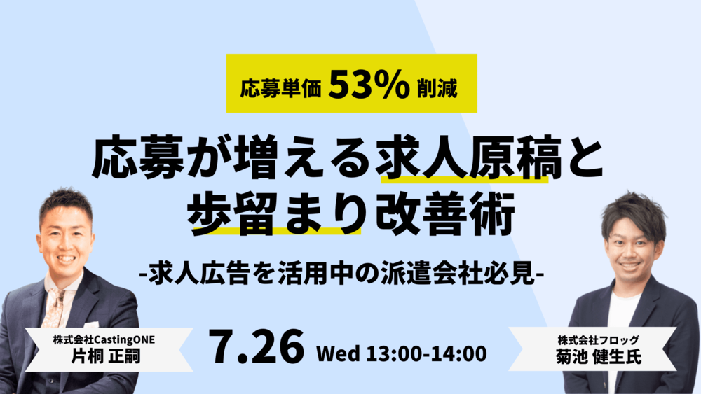 ※人材派遣会社向けセミナーのため、人材派遣会社以外の方からのお申し込みはお断りする場合がございます。 ※1社につき2名様までのご参加とさせていただきます。