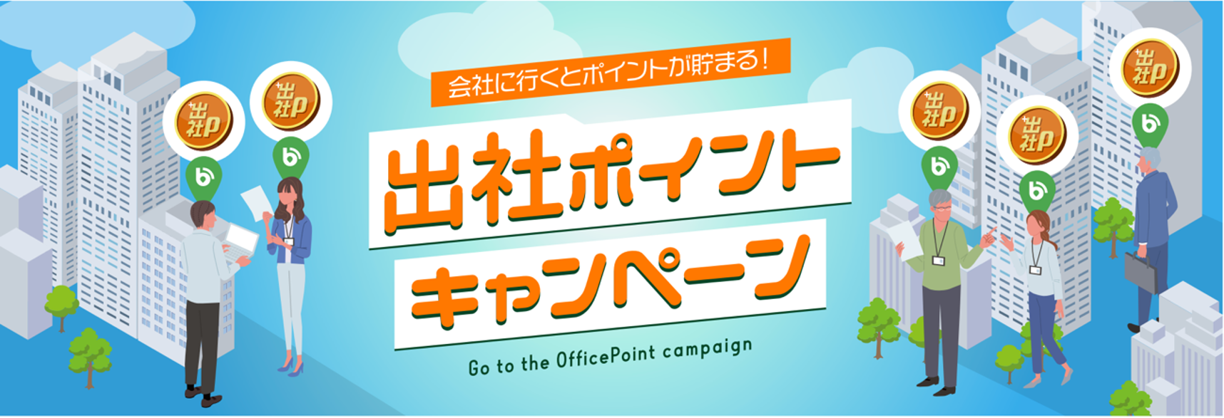 「出社ポイントキャンペーン」は、社員やスタッフの出社を促す目的として、利用できるキャンペーンとなっております。出社ごとにアプリに自動でポイントが貯まり、出社すると1ポイント獲得することができるキャンペーンとなっております。