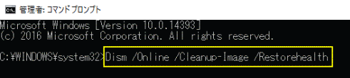 コマンド「sfc/scannow」で修復できない場合はコマンドDISMを試してみるといいでしょう。
