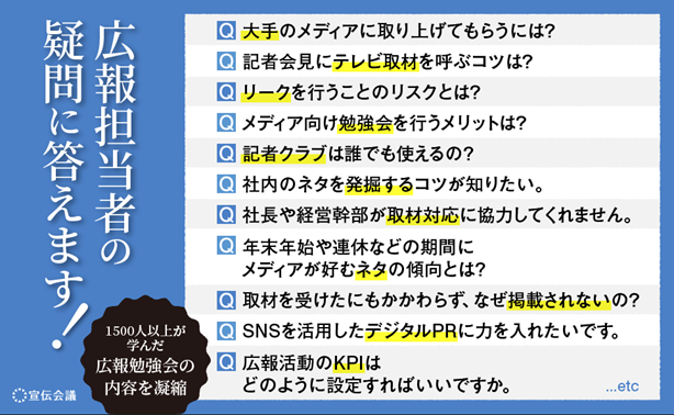 大手から中小企業、ベンチャー企業まで、1500人以上が学んだ人気の広報勉強会の内容を凝縮した、実践的な広報の教科書。メディアの関心を引く話題のつくり方からプレスリリースの書き方、メディア露出効果を最大化させるオウンドメディア・SNS活用法、ChatGPT活用まで、詳細にわたって解説します。広報担当者の素朴な疑問やちょっとした悩みに答える、30問のQ&Aを巻末に掲載しています。