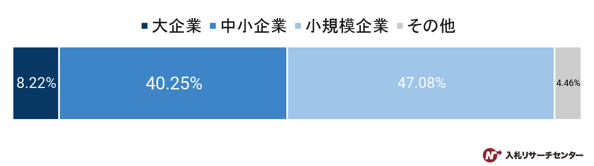 全省庁統一資格を新たに取得した新規企業のうち、中小企業は40.25%、小規模企業は47.08%となりました。