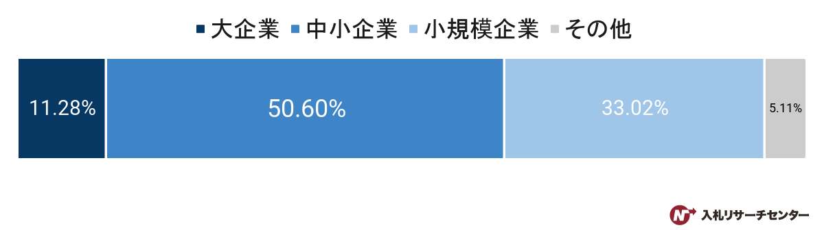 全省庁統一資格保有企業のうち、中小企業は50.60%、小規模企業は33.02%となりました。
