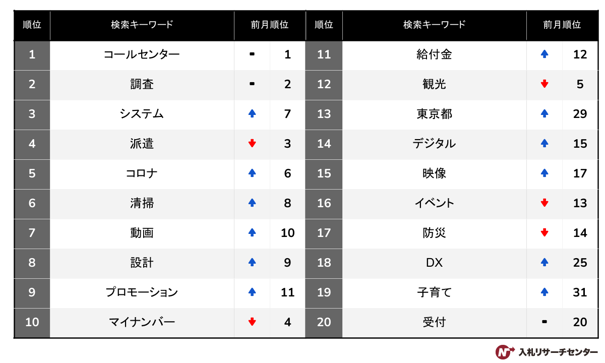 入札案件 検索キーワード 2023年6月の第1位は前月同様に「コールセンター」となりました。