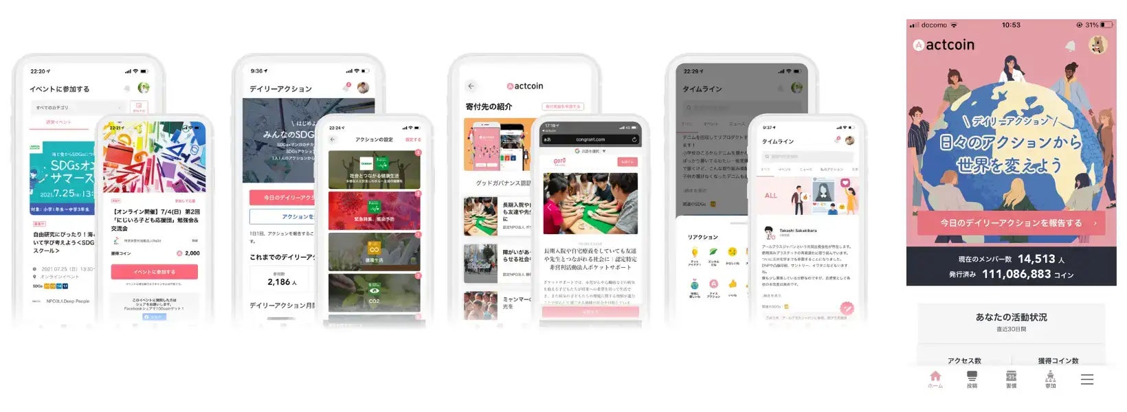 (※)「ソーシャルアクター」・・・actcoinで推奨されている社会的活動「イベント参加」「デイリーアクション(習慣)の報告」「寄付」それぞれで1回以上コインを獲得したユーザーを指します。