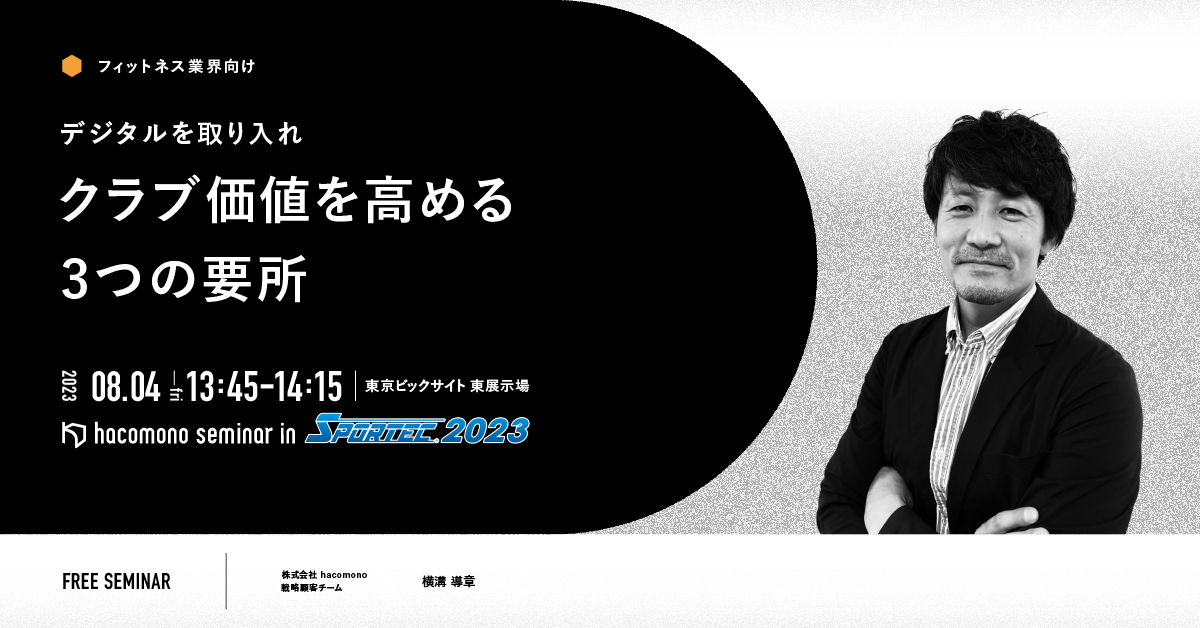新たな総合型フィットネスクラブにリブランドする「ATORIO DUE Next」と、その基幹システムを担うhacomonoによる「顧客の見える化による接客品質の向上」の狙いと内容をお話しします。 データ分析による付加価値創出やシステム移行に要したステップなど、DXに取り組むクラブ必見のセミナーです。