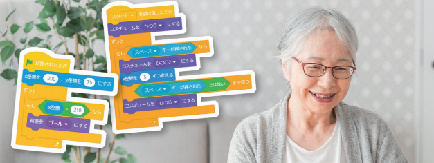 シニア講座では、はじめてプログラミングに挑戦する方でもわかりやすい「Scratch(スクラッチ)」を使用した授業を展開しております。