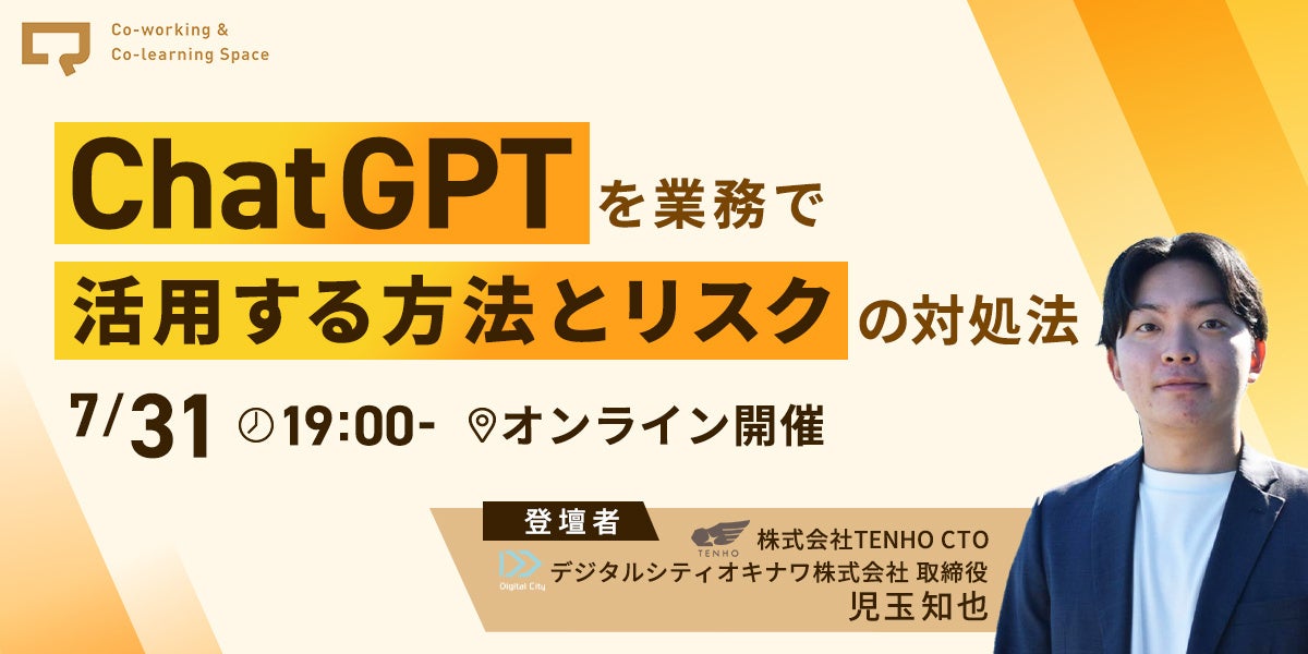 今回のセミナーでは、AIツールの開発から導入、運用保守を行うTENHO社にてCTOを務める児玉氏より、ChatGPTの具体的な業務活用法をはじめ、それに伴い生じるリスクとその対処法について、実際にツール開発や導入経験から得た知見を踏まえて、詳しく解説します。