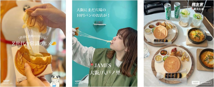 (写真:左から、大王チーズ10円パン / JAMES FMH / 韓友家 )