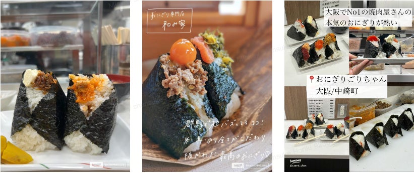 (写真:左から、おにぎり専門店 まんま / おにぎり専門店 和み家 / おにぎり ごりちゃん)