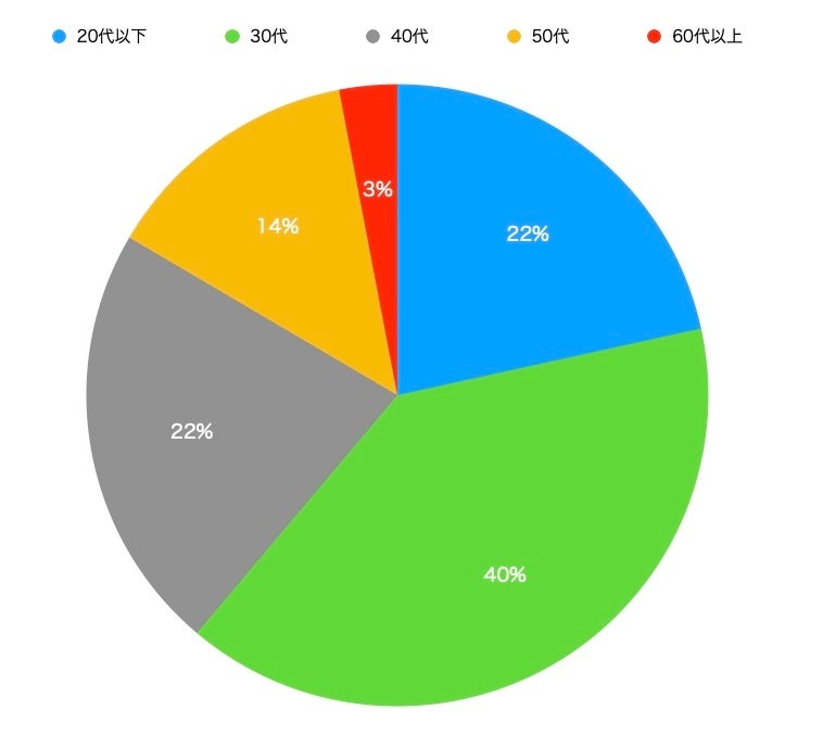 次いで、20代・40代となり、20〜40代で84%を占める結果となりました。