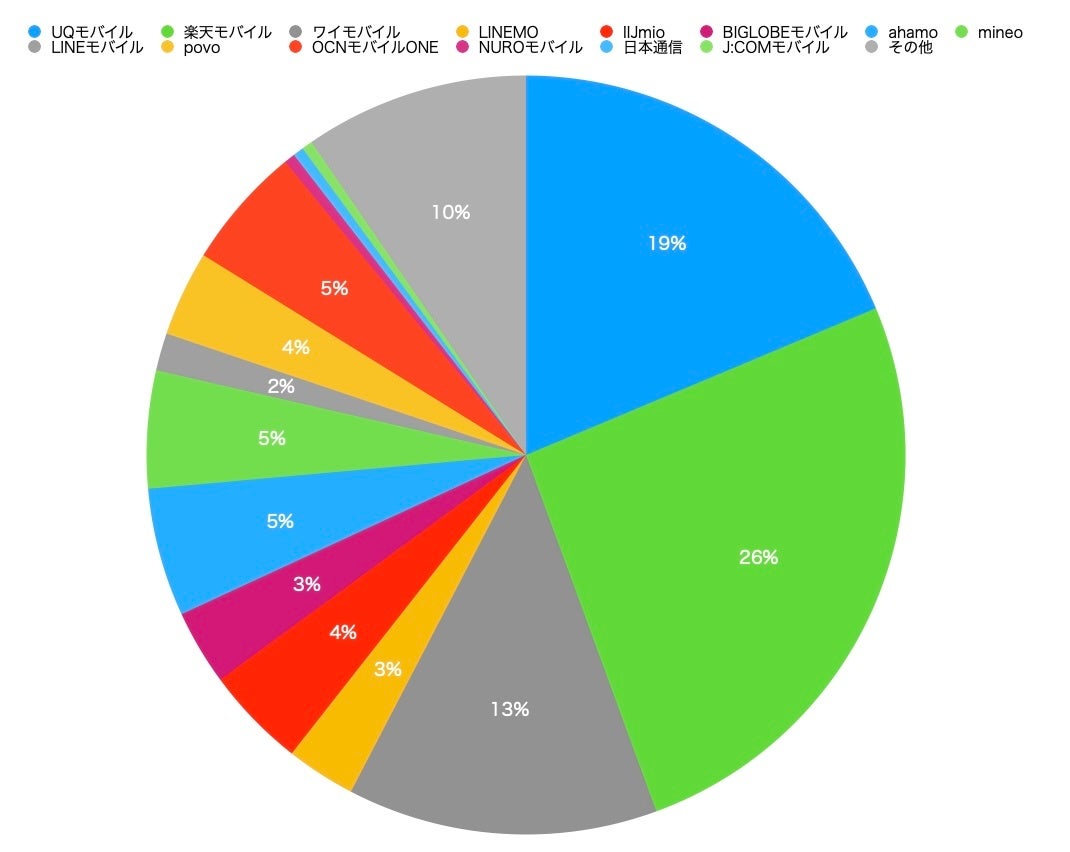 利用している格安SIMは割合として楽天モバイルが26%と一番多い結果となりました。