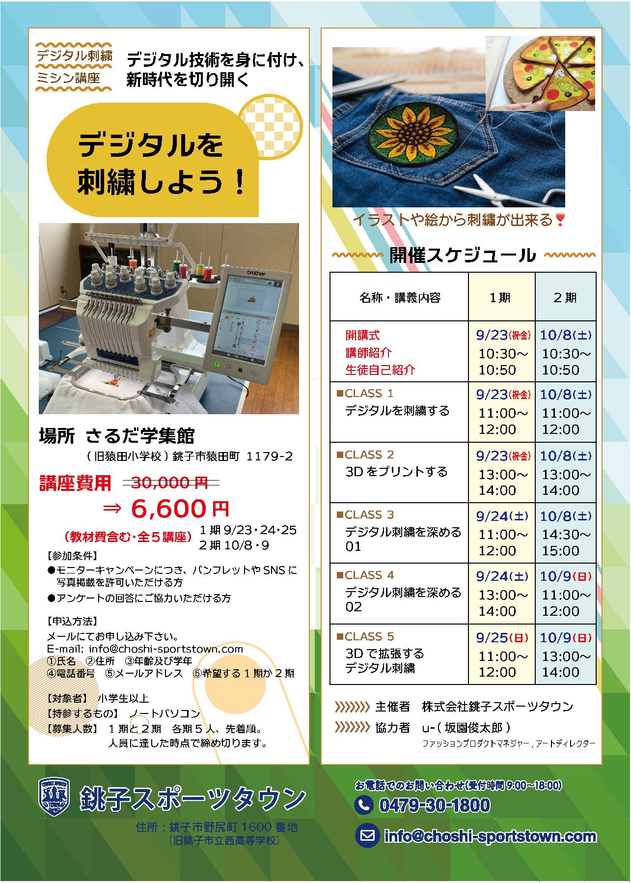 CLASS5 3Dで拡張するデジタル刺繍 1期9/25(日) 11:00-12:00 2期10/9(日) 13:00-14:00