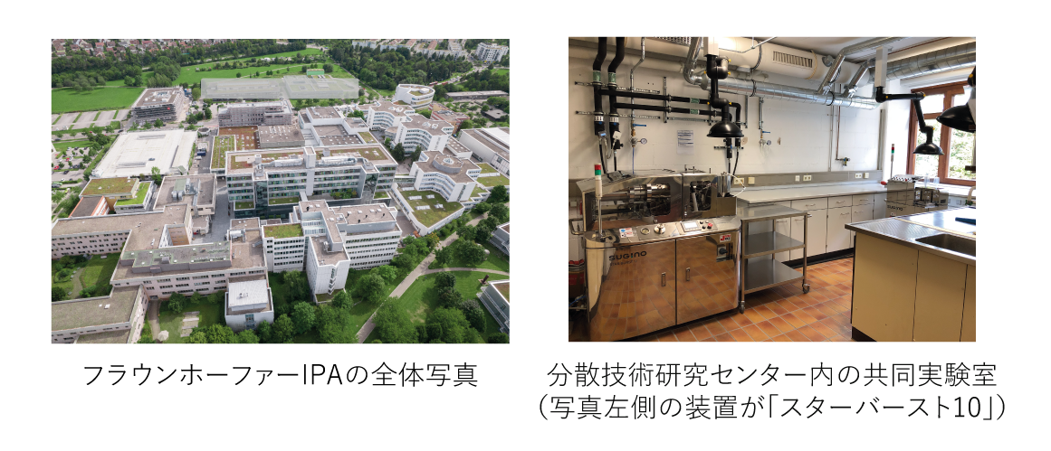 共同実験室を、シュツットガルトのIPA分散技術研究センター内に設置し、当社の湿式粉砕・分散加工装置「スターバースト」により先端材料開発を推進するとともに、2021年12月に設立した当社現地法人Sugino Europe GmbHと連携して、欧州における微粒化装置事業を強化しています。