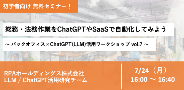 毎度50名以上の方々にご応募頂いております、弊社・RPAホールディングス主催の「ChatGPTワークショップ」の第7弾を開催します!