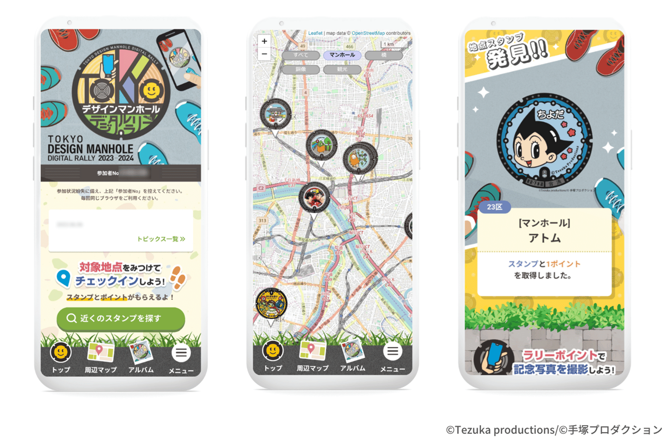 東京都は、令和元年度から区市町村と連携し、アニメ・マンガ・ご当地キャラクター等を活用したデザインマンホール蓋の設置に取り組んできました。本年度も、参加者がスマートフォンを使って、都内全域のデザインマンホールや観光スポット等を巡るスタンプラリー「TOKYOデザインマンホールデジタルラリー」を開催します。