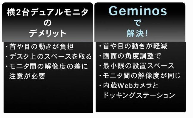 左図:既にご利用中のモニターにGeminosモニターをプラスするとさらに効率が上がります。