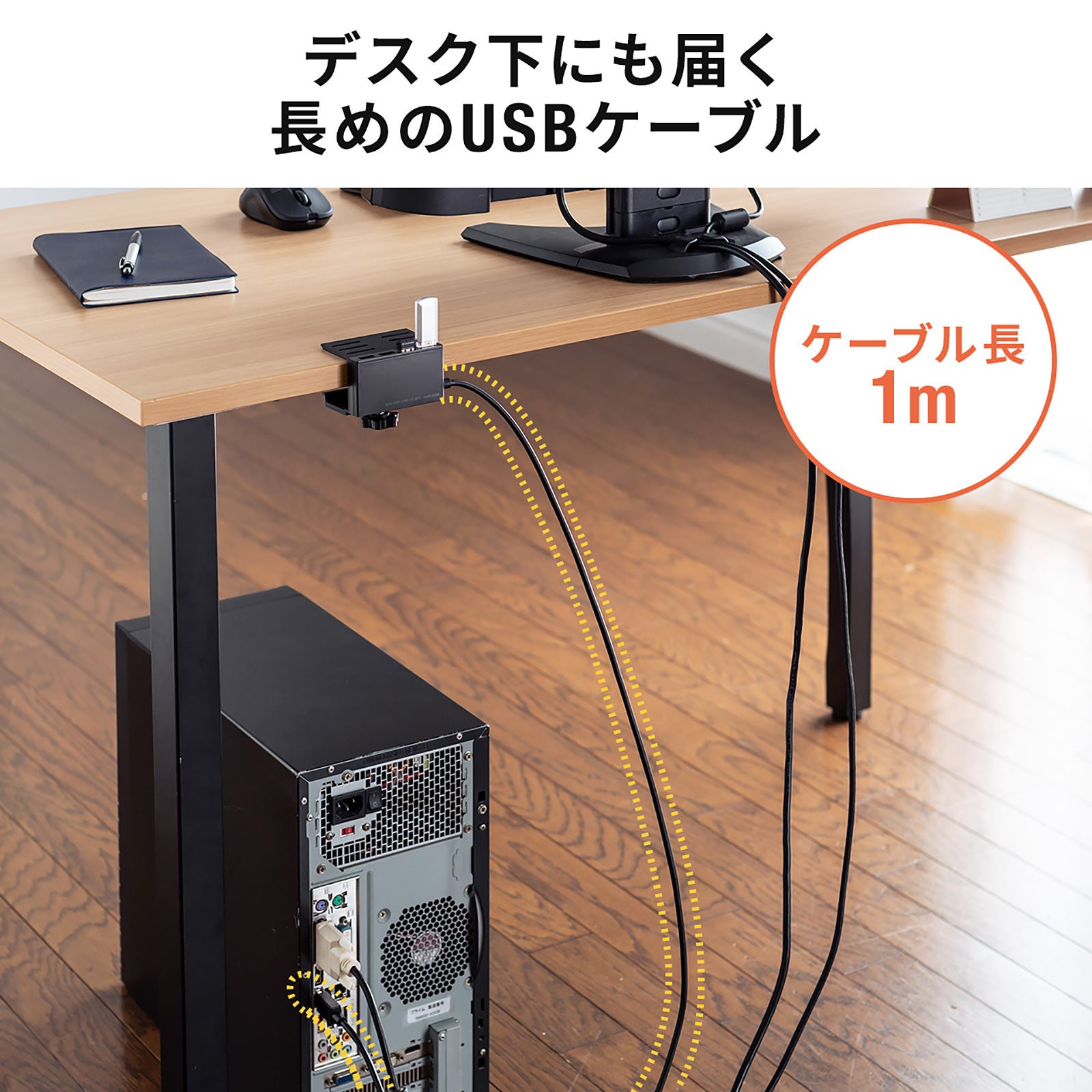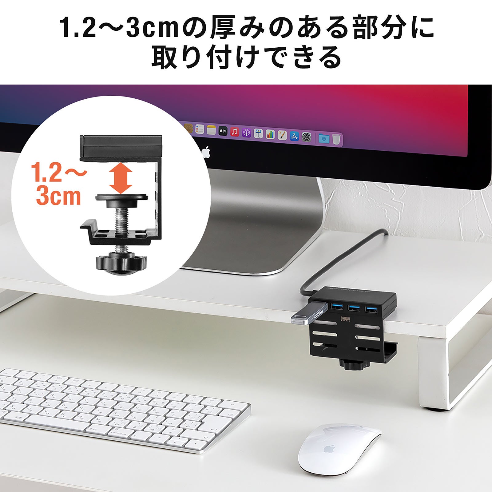 本製品は、専用クランプで机に固定できるUSBハブです。