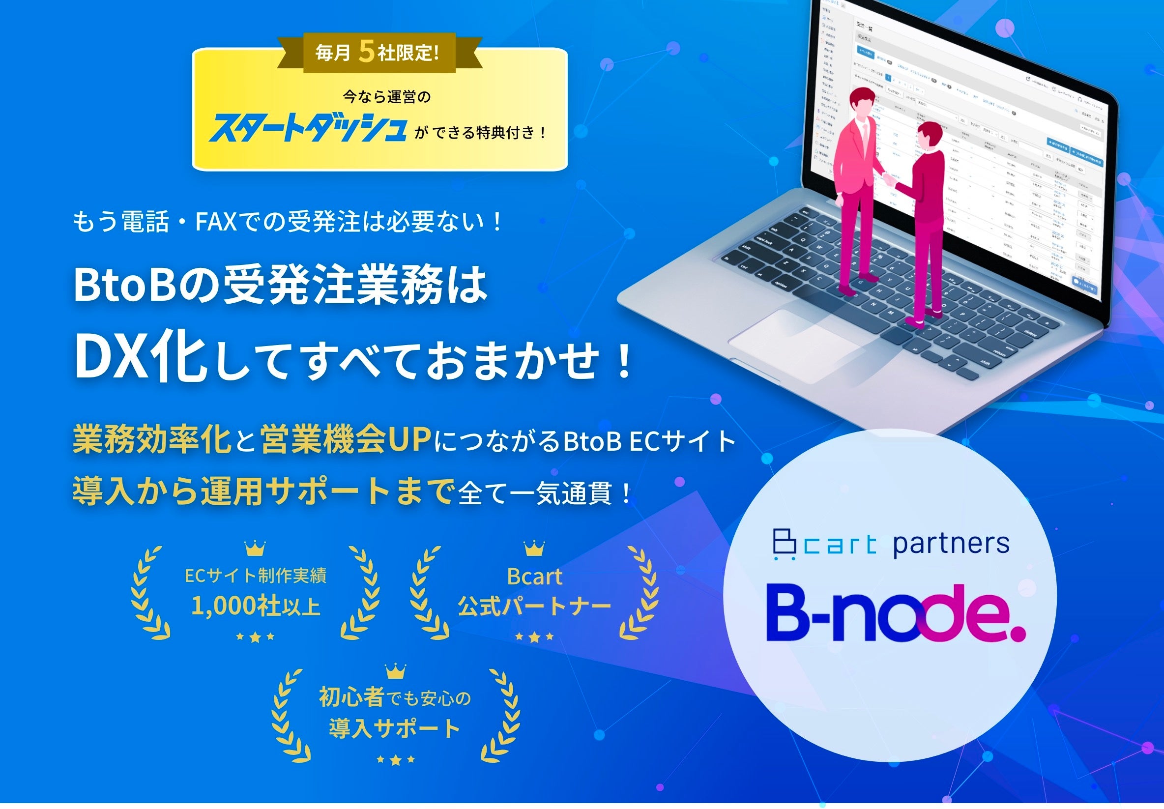 BtoBの受発注業務の悩みを一挙に解消!低価格でDXを実現する新サービス、Bcart導入サポート「B-node.(ビーノード)」を開始