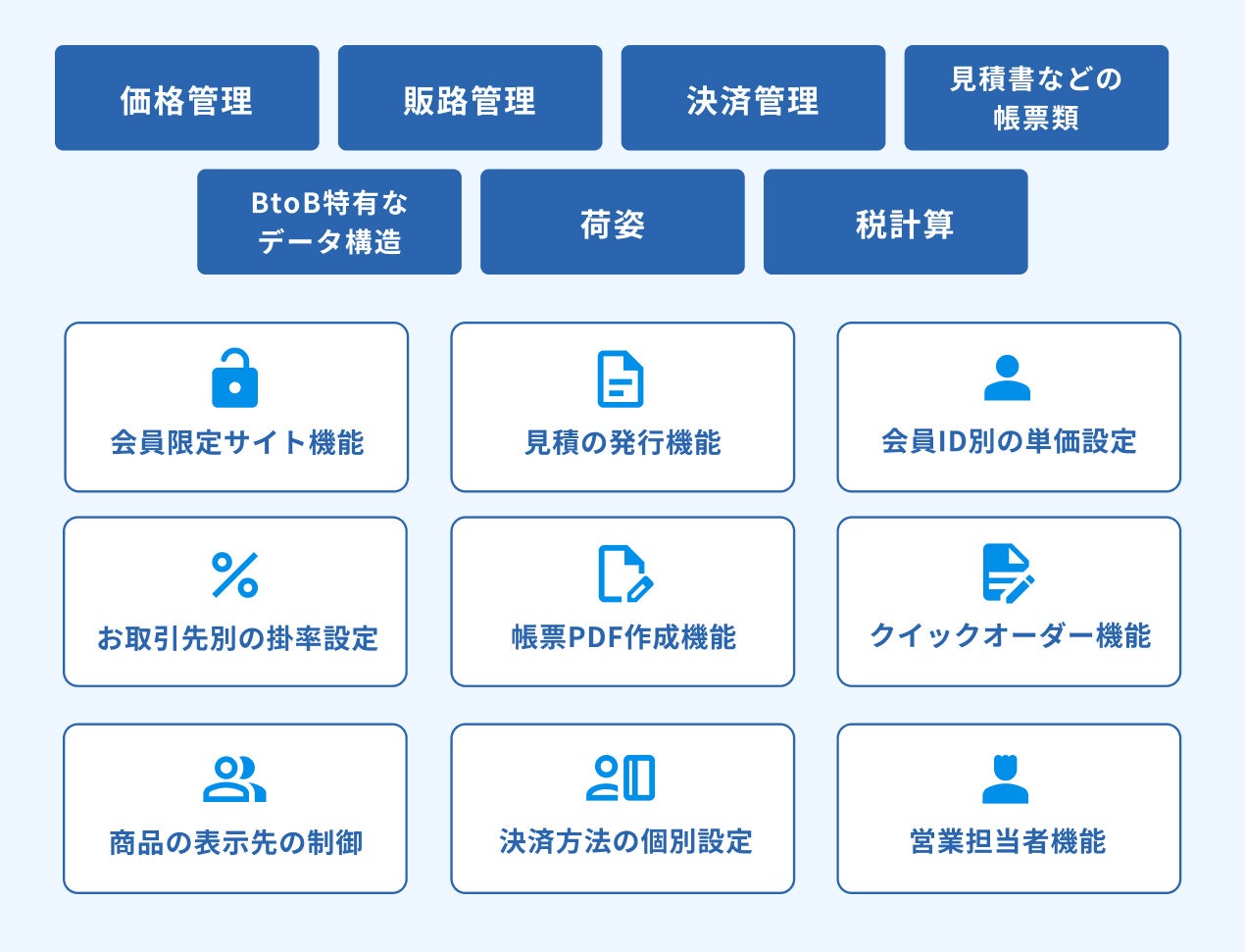Bcartは、BtoBの受発注業務に必要な機能を一通り搭載しています。それらの機能が標準搭載されているため、カスタマイズが不要。これにより、導入コストを大幅に削減することが可能です。