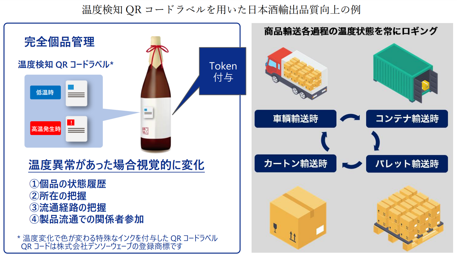 本実証プロジェクトは、近年出現したブロックチェーンによる新しい情報技術、いわゆるWeb3 *(ウェブスリー)技術と、IoTを活用することで、輸出製品にサプライチェーン全体にわたる個品管理を可能とし、同時に輸送中の製品に対し多次元の品質トラッキング及びサプライチェーンの各段階で関わる参加者へ有効かつ多様な参加機会を提供することにより、従来技術では実現できなかった効率化・高品質化・最終需要家への高付加価値化を実現することで、輸出製品を大幅に増加できる日本酒の輸出増のプラットフォームの実現を目指し、そのモデルとなるモデルシステムの実証を行います。