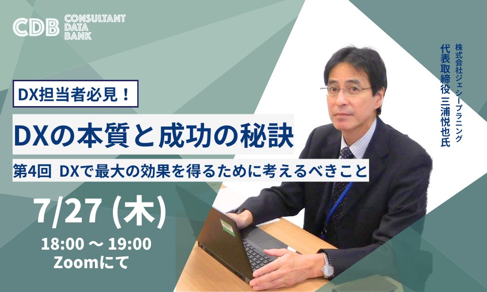講師は、NECグループで20年以上のキャリアを持つ株式会社ジェーシープラニング 代表取締役の三浦氏です。全5回に渡ってDX化の本質を解くシリーズの第四回目になります。