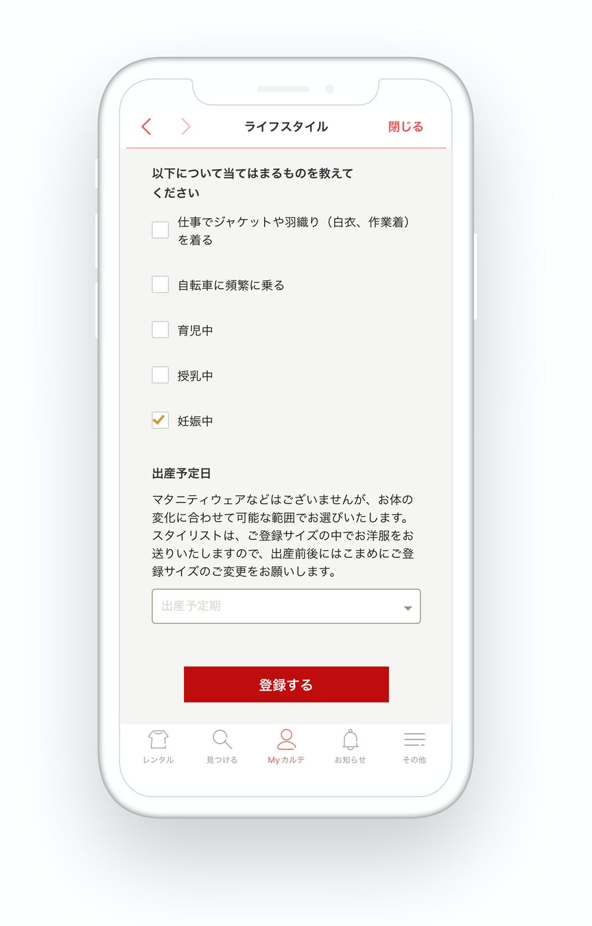 『airCloset』では、マタニティ期だけでなく、授乳中や育児中などライフスタイルに関する情報をいつでも登録することが可能です。一人ひとりに似合うお洋服をお選びする「パーソナルスタイリング」を行うこと、加えてお客様のスタイルカルテに登録された最新情報をもとにスタイリングすることで、お客様のライフスタイルの変化に合わせたファッション体験のご提供が実現しています。