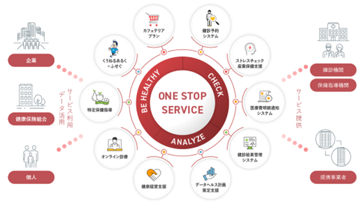 ・自社開発したバリューカフェテリア®システムで、健康情報のデジタル化サービス、各種健康管理サービス(健診予約、健診結果管理、特定保健指導、カフェテリアプランなど)をワンストップで提供。