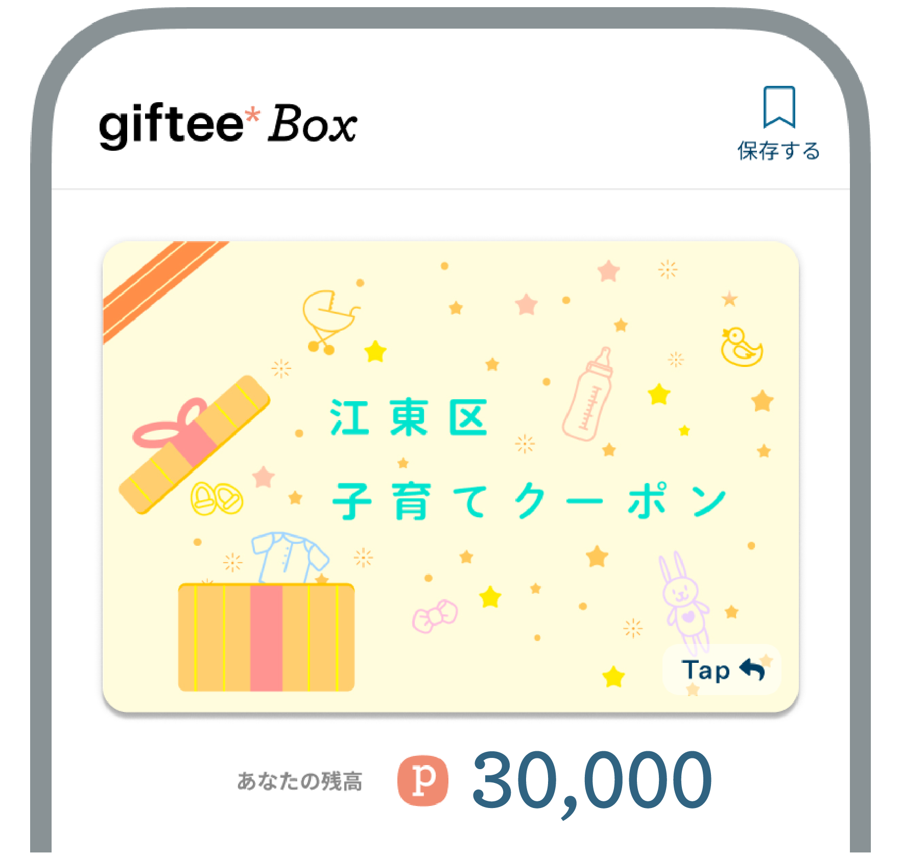 デジタルギフトボックス「江東区子育てクーポン」画面イメージ