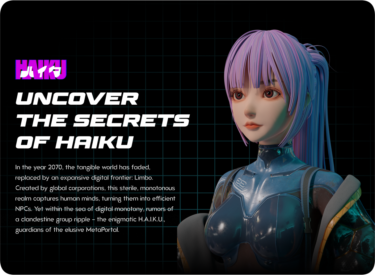 Avatar.Oneではアバター・コレクション第一弾として、TencentやHero Gamesのアートワークを手掛け、15万人以上のファンを持つ一流アニメアーティスト Lou LL氏がデザインする「HAIKU(ハイク)」シリーズをローンチします。HAIKUは、2070年という近未来的な世界観の中で、NPCの生活から自由を手に入れるために奮闘する女性戦士をテーマとした、2000以上のユニークな3Dアバターを創造するものです。この魅力的なコレクションは、アバターメーカーを通じて入手でき、ユーザーは自分だけのHAIKUアバターを作成することができます。2023年の第3四半期にローンチ予定のHAIKUは、今年後半にかけてリリース予定の数々のコレクションの第一弾となります。