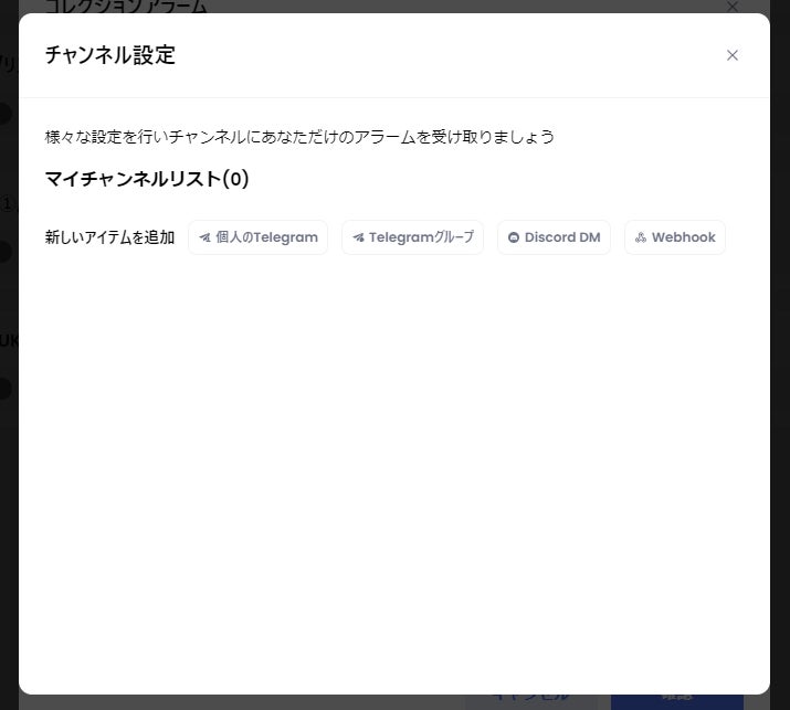 コレクション価格の変動、取引量の変動、また自身が追跡した特定のウォレットの取引活動など、ユーザーがカスタムに条件を設定するとSNSで通知を受け取れるサービスです。Premiumサービスユーザーの場合、50個までアラートを設定可能になります。