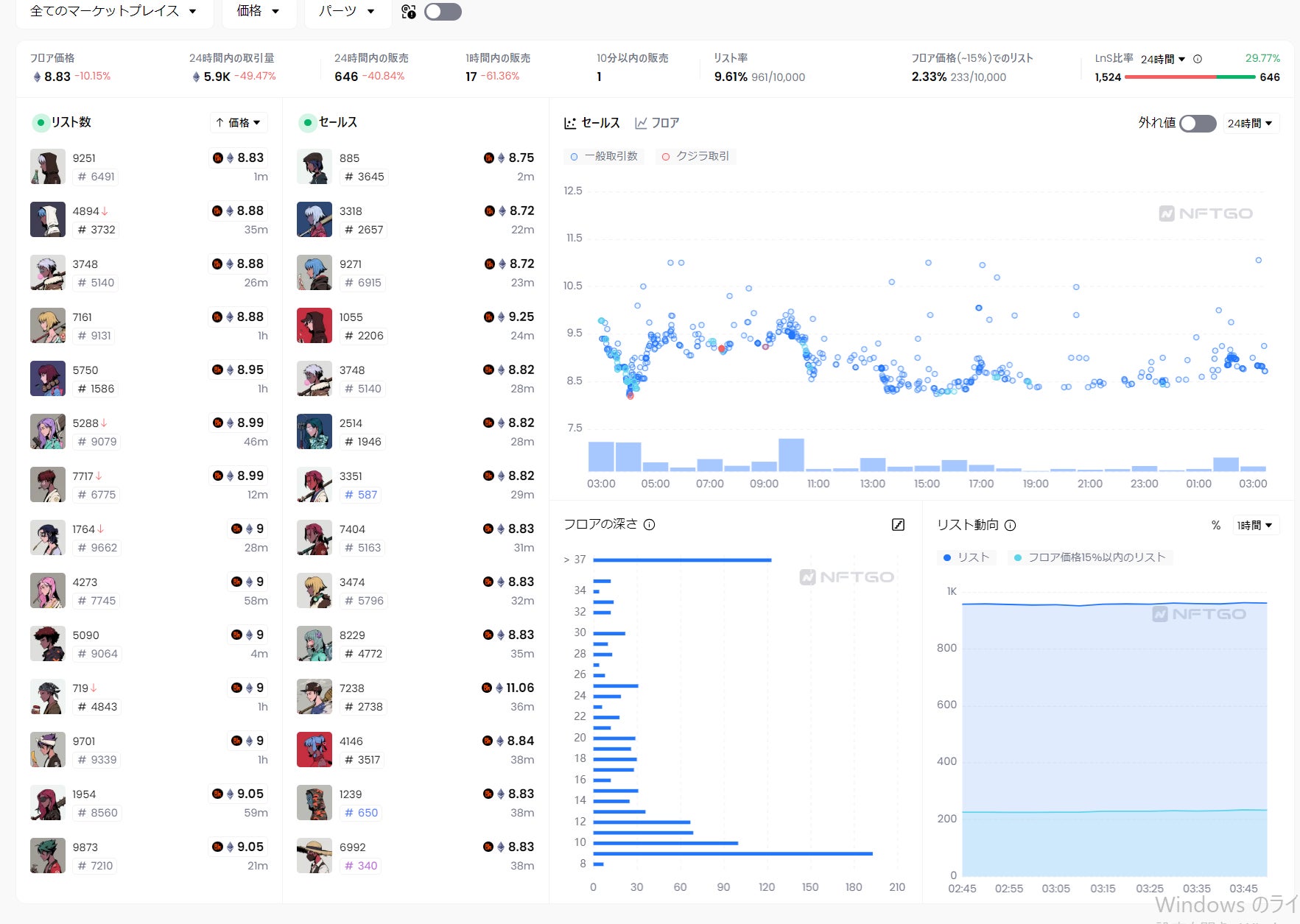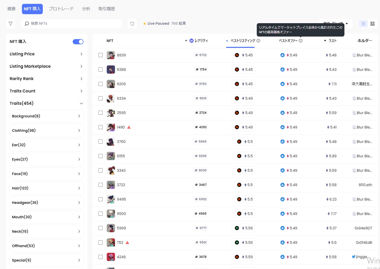OpenseaのオファーやBlurなどすべてのマーケットプレイスからのオファー情報を総合して閲覧し、戦略的なオファー力を徹底的に追跡できます。