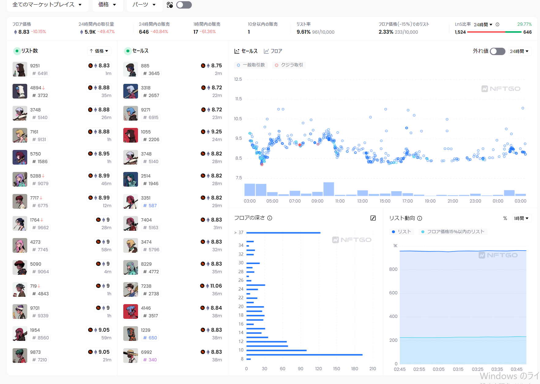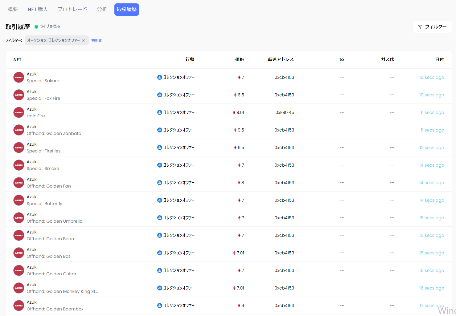 OpenseaのオファーやBlurなどすべてのマーケットプレイスからのオファー情報を総合して閲覧し、戦略的なオファー力を徹底的に追跡できます。