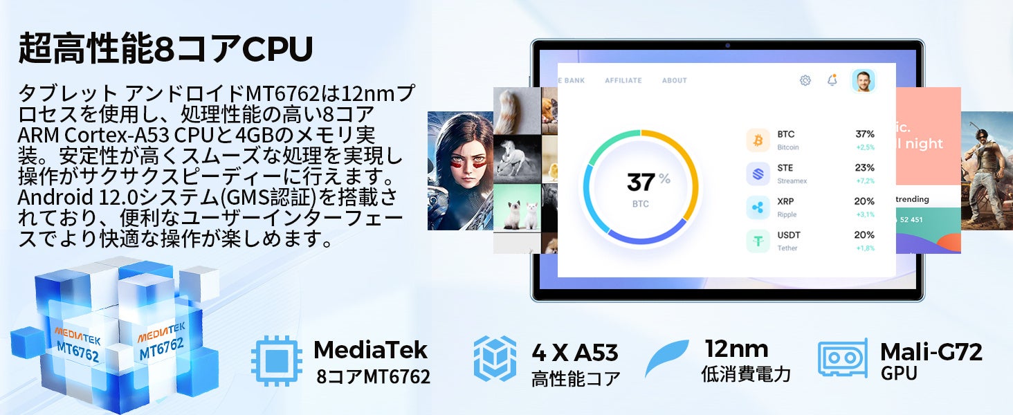 最新のAndroid 12を搭載したTECLAST P20S。よりスムーズで高速な動作が実現し、シンプルなデザインで使いやすさが向上。また、GMS認定により、Google Playストアからアプリ、ゲーム、映画を自由にダウンロード可能。TECLAST P20Sは、仕事、娯楽、学習など、あらゆるニーズに対応し、新たな可能性を提供します。