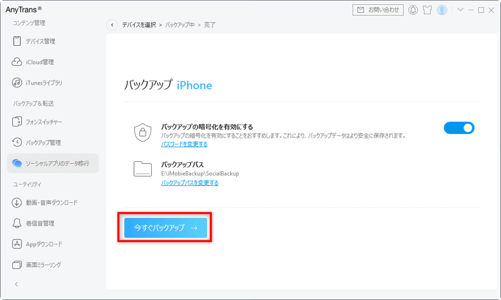 また、バックアップにトラブルが生じる場合、バックアップを復元できないのみならず、さらにはデータ損失が発生する可能性があるため、AnyTransを利用して、LINEトーク履歴のバックアップと復元を行うと、より簡単かつ安全になります。