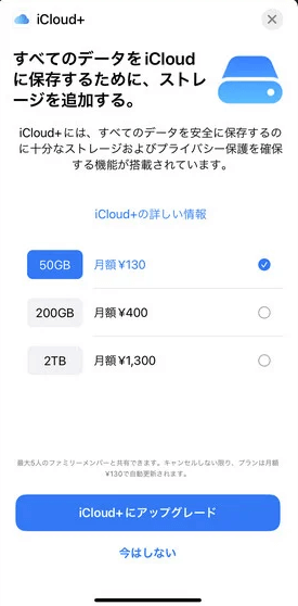 ストレージの空き容量を増やしたり、不要なデータを削除したりする操作が必要となります。ちなみに、「iCloud」の無料容量は最大5GBとのことです。