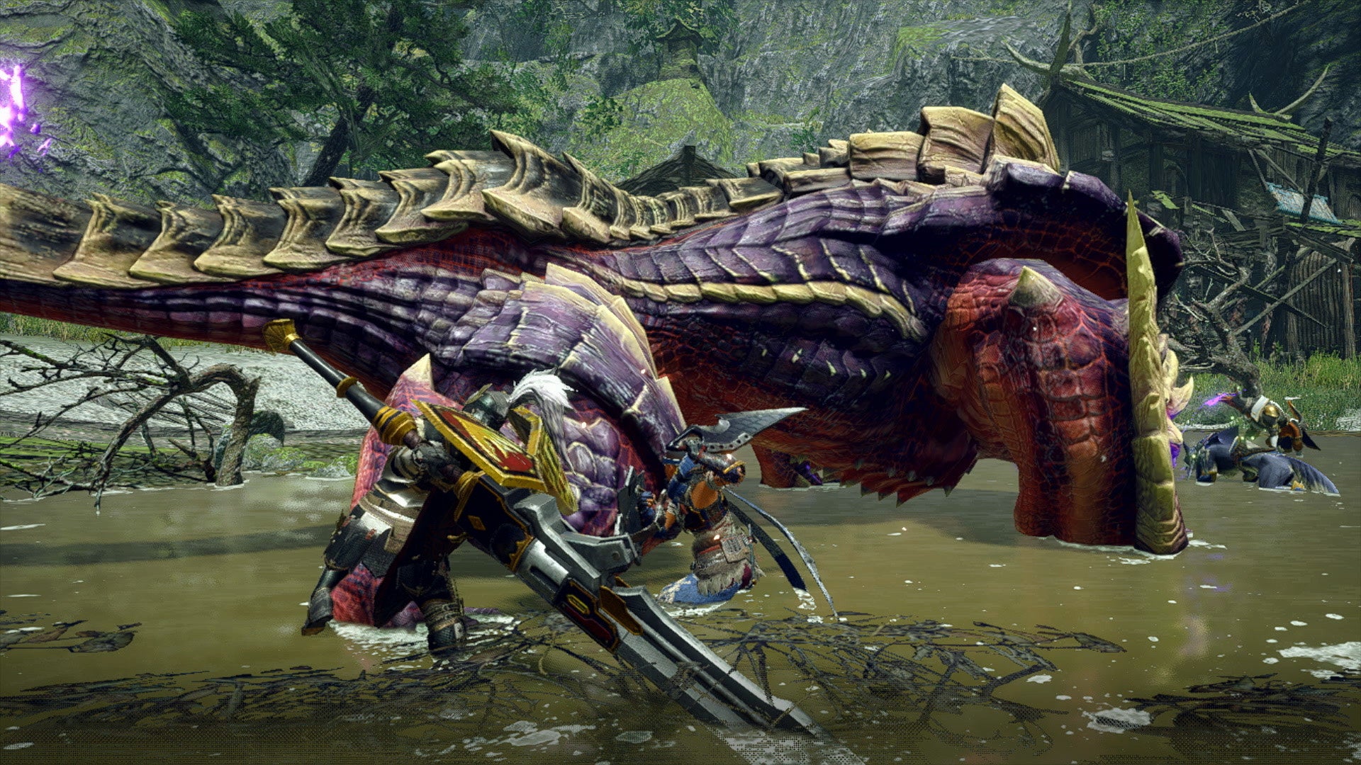 モンスターの異変を調査する観測拠点「エルガド」を中心に、王国最大の脅威「王域三公」と呼ばれる新たなモンスターをはじめ、亜種モンスターやシリーズからの復活モンスターが続々登場。『モンスターハンターライズ』に登場したモンスターもマスターランクのクエストでは追加アクションやバランス調整により、より違った狩りを楽しめる。