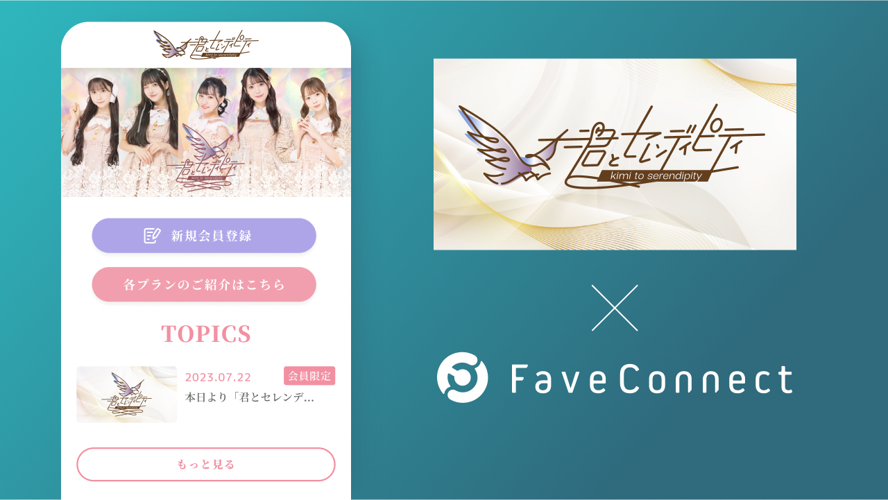 「君とセレンディピティ オフィシャルファンクラブ」は、アイドルグループ「君とセレンディピティ」の月額制ファンクラブです。会員登録すると、チケット先行や会員No.入りのデジタル会員証、ここでしか見れない写真や動画を楽しめる、より「君とセレンディピティ」が大好きになって頂ける場所となります。