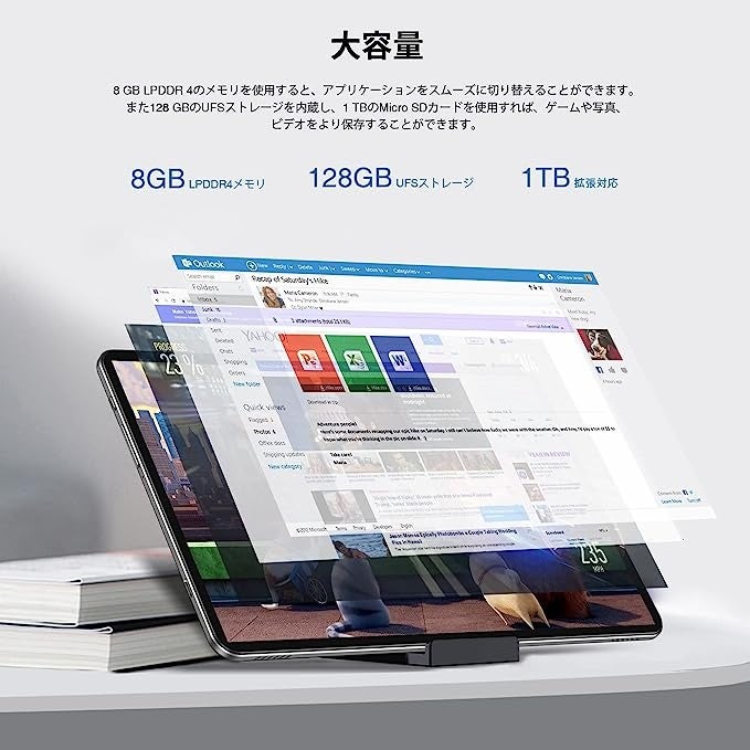 【10.4インチ高解像度2000*1200 Incell FHD IPS ディスプレイ】このタブレットは、広い10.4インチの画面サイズを備えた大型IPSディスプレイを採用しています。この大画面により、映像を快適に楽しむことができます。また、高解像度のFHD画面は、映を鮮明で美しく表示し、色彩表現も豊かです。選ばれたIPSパネルにより、広い視野角からでも映像を楽しむことができ、グラフィックが美しく、テキストが鮮明に表示されます。