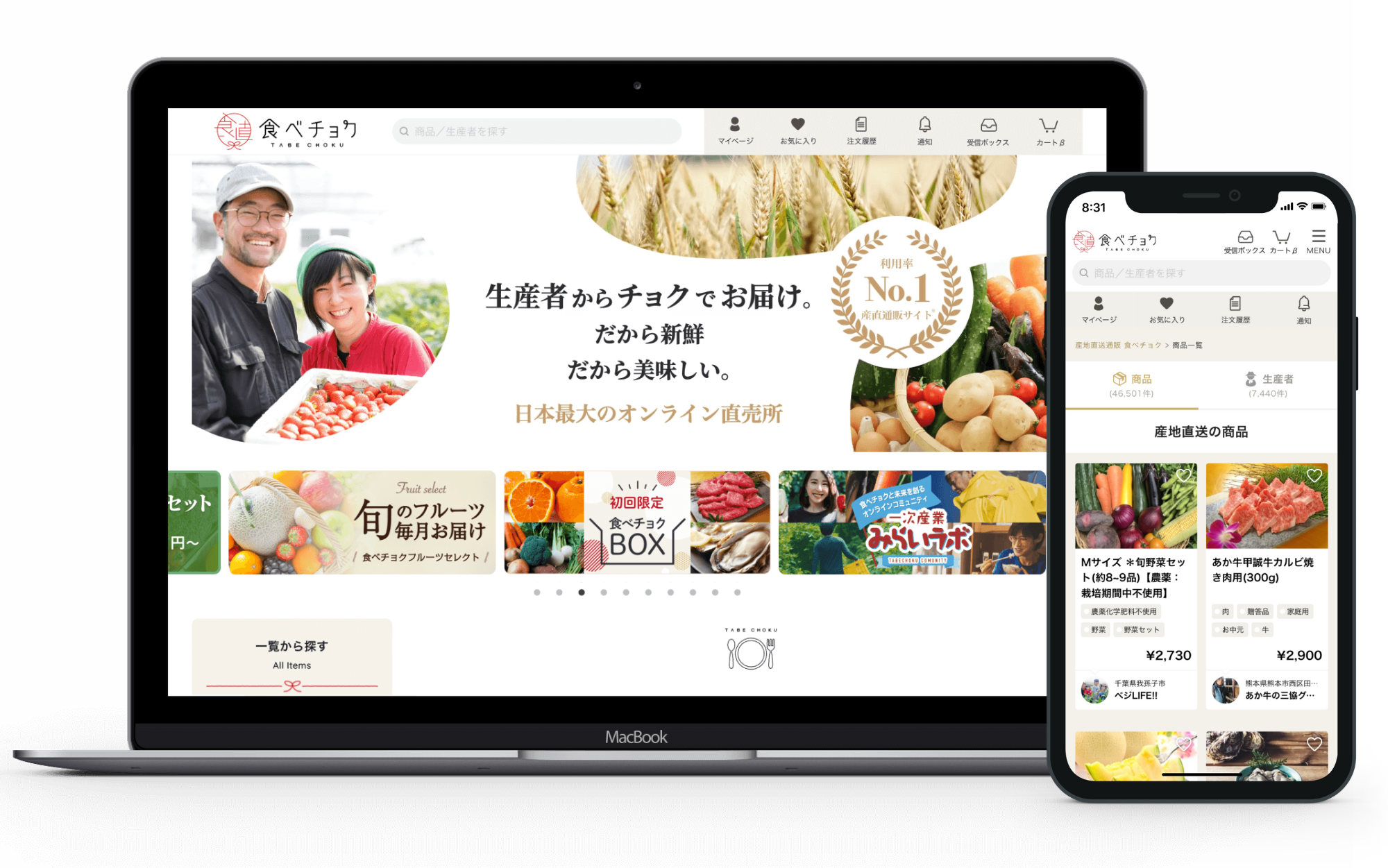 ⾷べチョクは、こだわり⽣産者から直接⾷材や花きを購⼊できる産直通販サイトです。日本の産直通販サイトの中で認知度や利用率などの9つのNo.1(※1)を獲得しています。