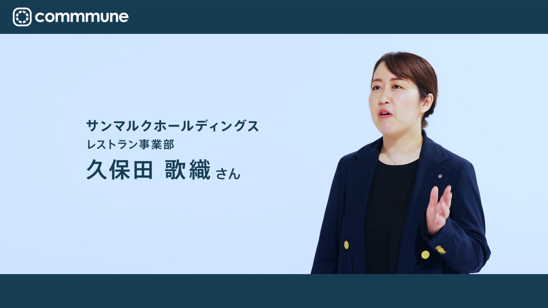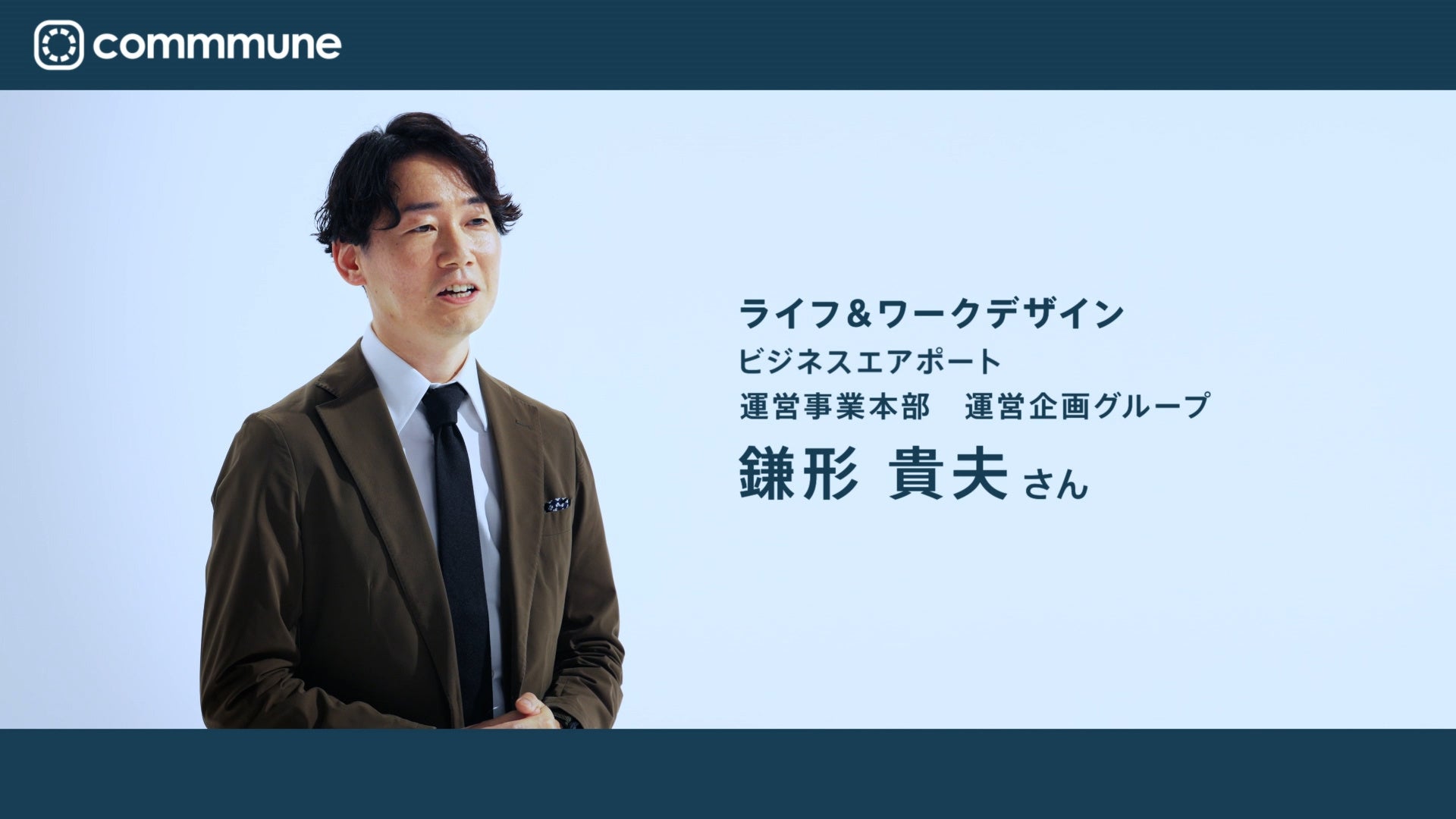 今までBtoB企業でよく用いられていたインタビュー動画とは異なり、広い空間を活用しつつ、インフォグラフィックで立体的な動きを出して画面をデザインすることで、commmuneの先進的な印象を作り上げています。また、セリフを用意したわけではなく、インタビュー内容を自然にピックアップすることでお客様が本当に感じていることを表現することに注力しました。