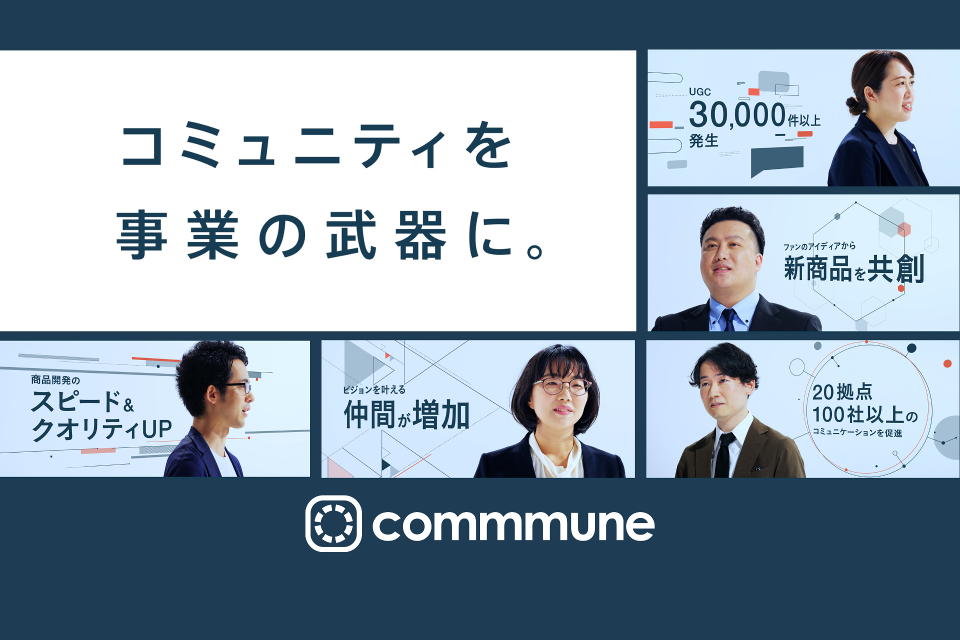今回のCM動画は、現在commmuneをご活用いただいているお客様にご出演いただき、コミュニティ運営で感じた喜びや、新たな発見、commmuneのご活用方法、実際の成果などをお客様ご自身の言葉で語っていただきました。