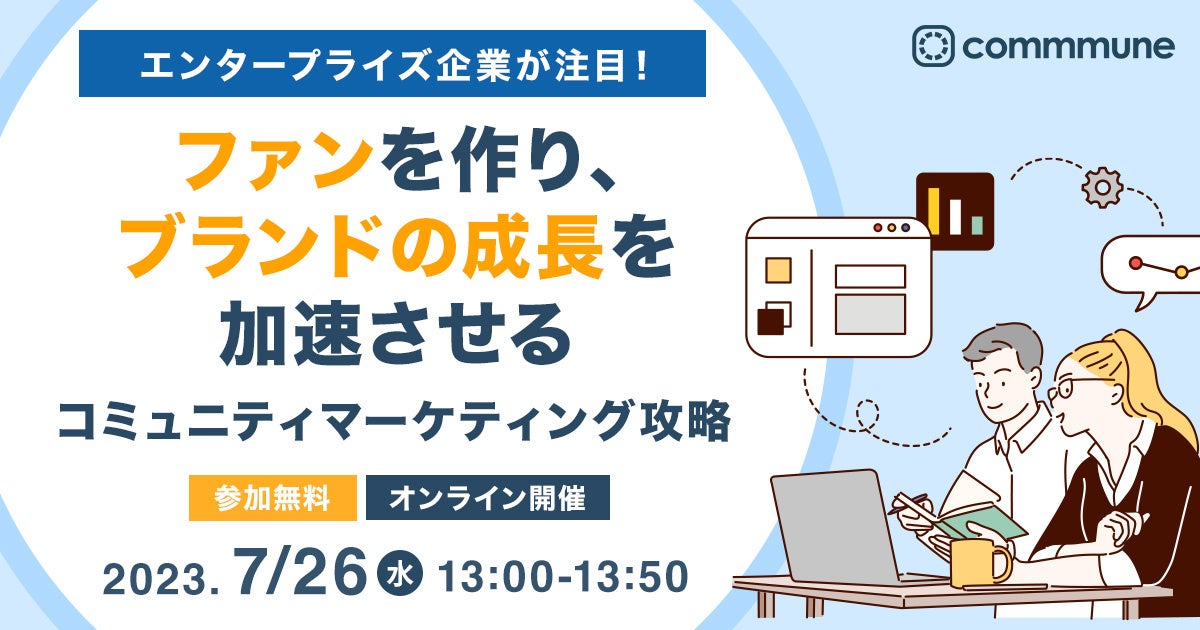 「commmune」は、コミューン株式会社が提供するコミュニティサクセスプラットフォームです。自社に最適なコミュニティをノーコードで簡単に構築・運用でき、顧客・ユーザーコミュニケーションのワンストップ化が可能です。コミュニティを通して、課題解決・利用度向上・ファン増加を促し、企業の継続的な売上向上を実現します。