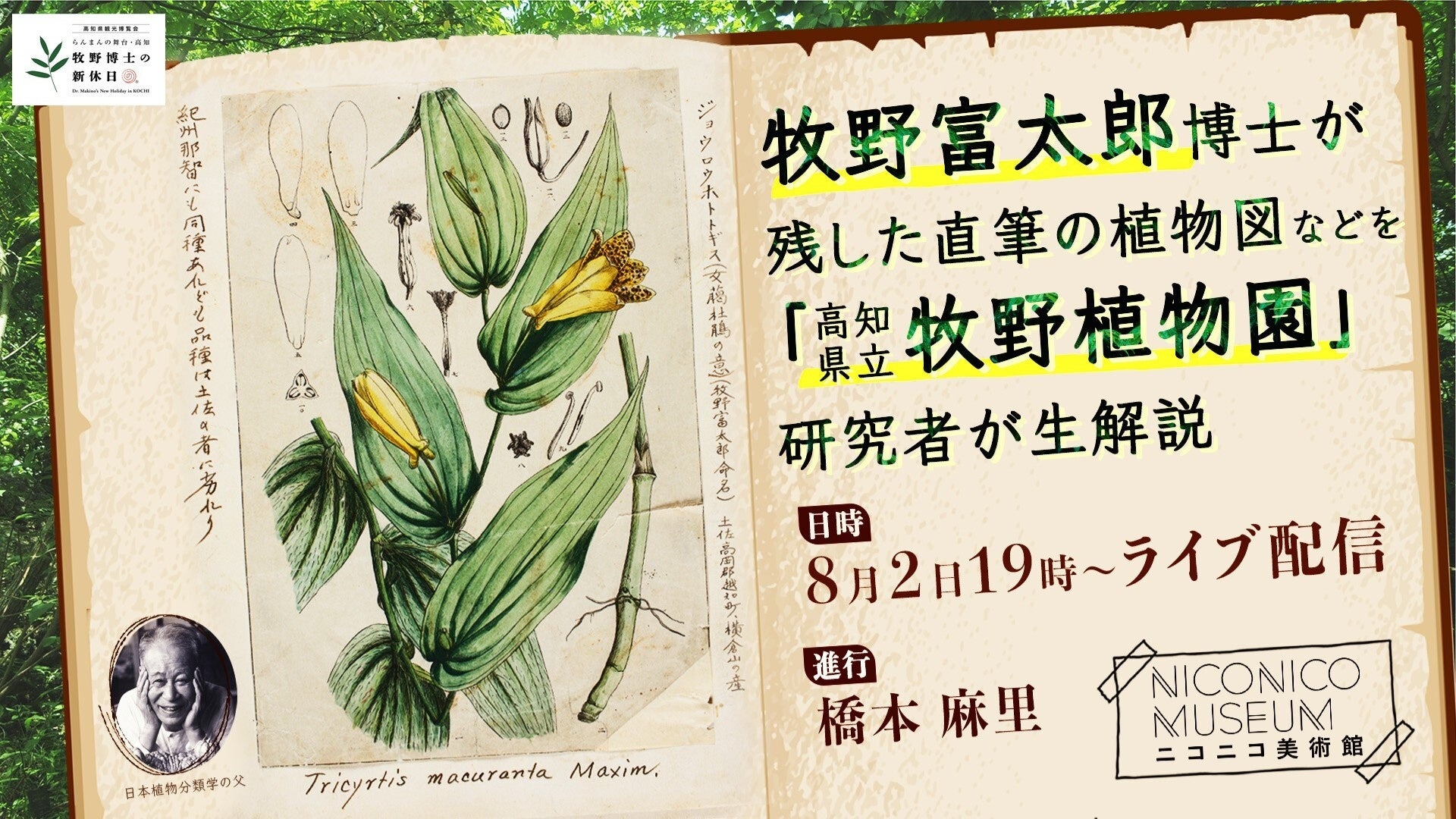 株式会社ドワンゴ(本社:東京都中央区、代表取締役社長:夏野剛)は、ライブ配信サービス「ニコニコ生放送」で提供している、学芸員や専門家の解説とともに展覧会の魅力をお届けするオンラインギャラリートーク企画番組「ニコニコ美術館」にて、高知県立牧野植物園「牧野富太郎記念館」の模様を2023年8月2日(水)19時から生中継します。