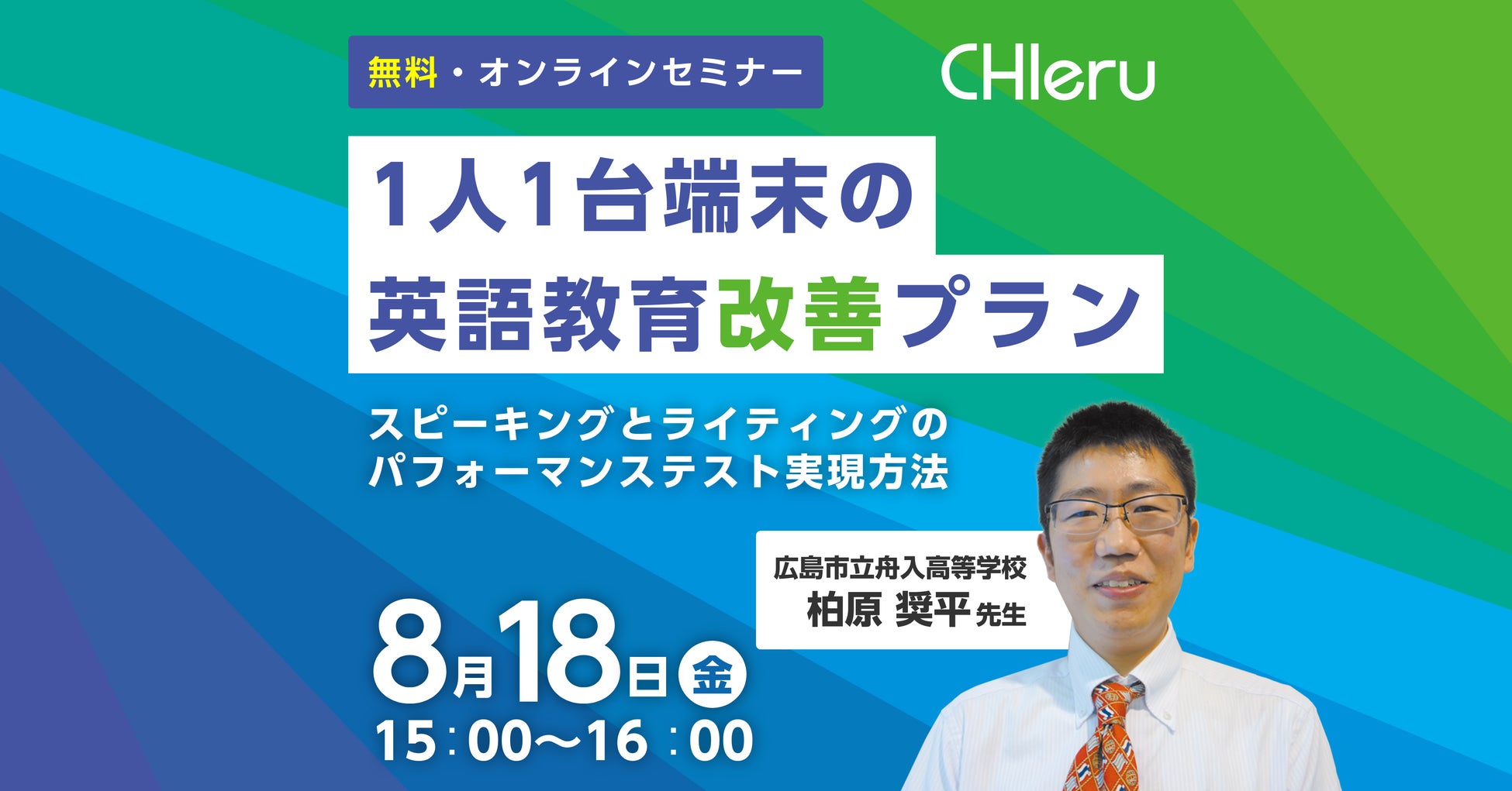 学校教育向けにICT利活用を支援するチエル株式会社(本社:東京都品川区、代表取締役社長:粟田  輝)は、2023年8月18日(金)にオンラインセミナー「1人1台端末の英語教育改善プラン スピーキングとライティングのパフォーマンステスト実現方法」を開催することをお知らせいたします。